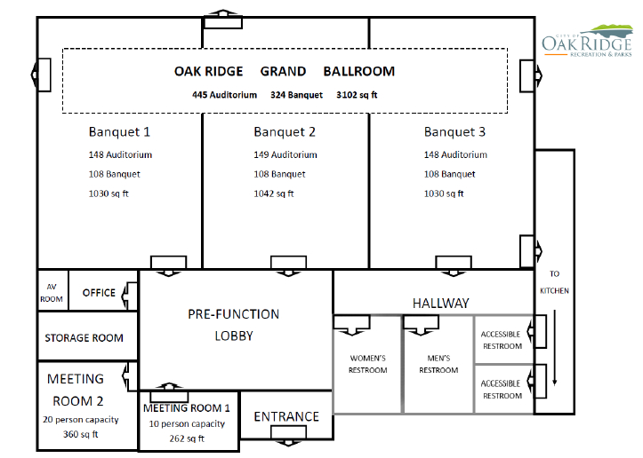Attached to the Oak Ridge Civic Center is a 10,834-square-foot Conference Center.