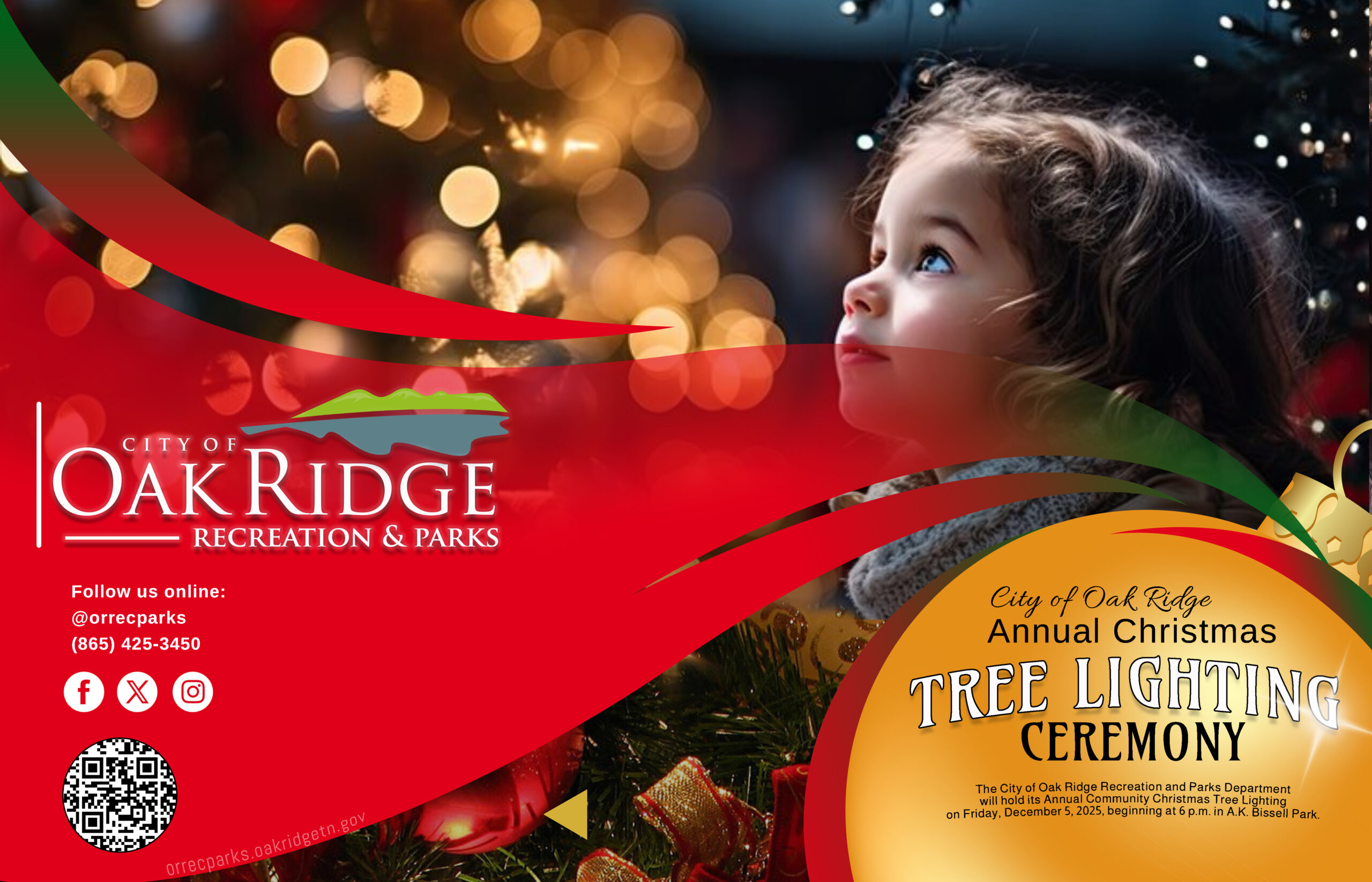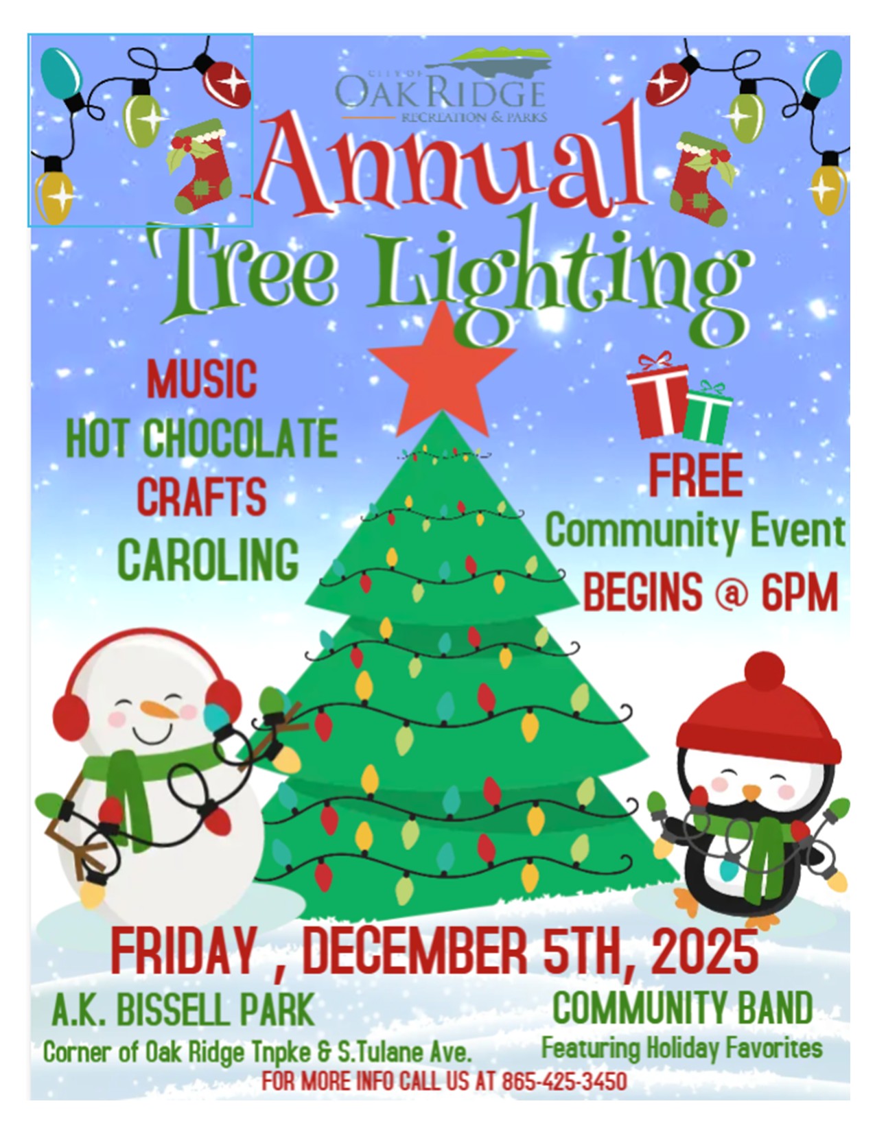 The City of Oak Ridge Recreation and Parks Department hosts the highly anticipated annual Community Christmas Tree lighting ceremony on December 5th beginning at 6 pm in A.K. Bissell Park. This festive event has become a beloved tradition within the community, bringing together residents of all ages to celebrate the holiday season.